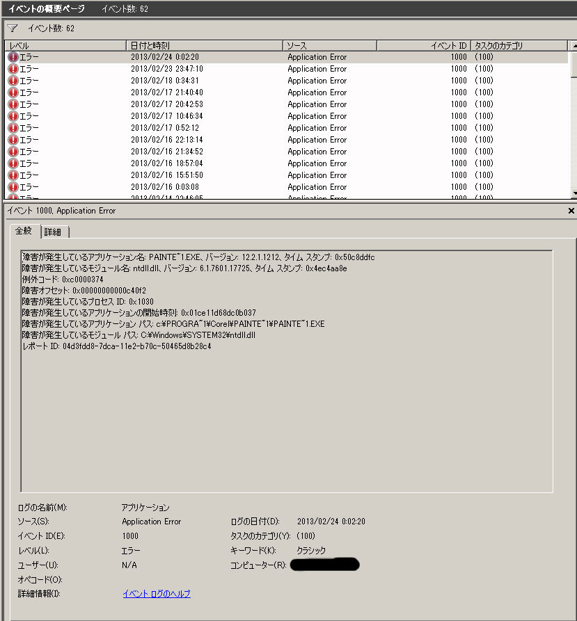 〈図1 イベントエラーログ〉