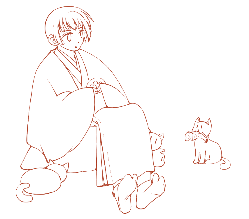 ここでは、パーツを分けてペン入れします。装飾の多い衣装を描く場合などは特に、各パーツ事に色を分けてペン入れすると便利になることが多いです。(1)基本部分のペン入れ